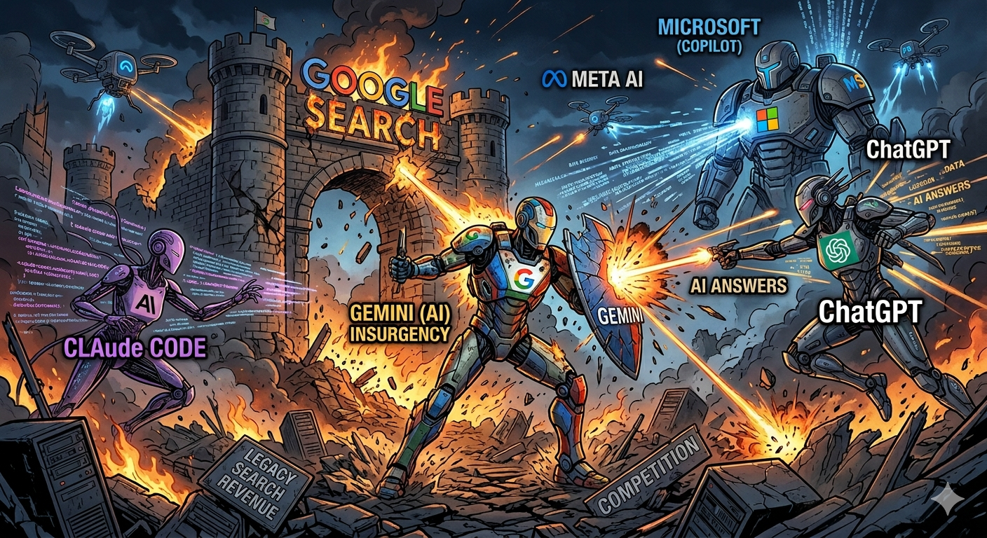 これは他社との競争ではありません。Googleが自社の最大の収益源を、自社のAI製品で破壊しているのです。